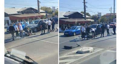 UPDATE - "Din verificări a reieșit faptul că un autoturism condus condus un bărbat în vârstă de 35 de ani ar fi pătruns în sensul giratoriu, acroșând un tânăr în vârstă de 19 ani care se deplasa pe trotinetă.