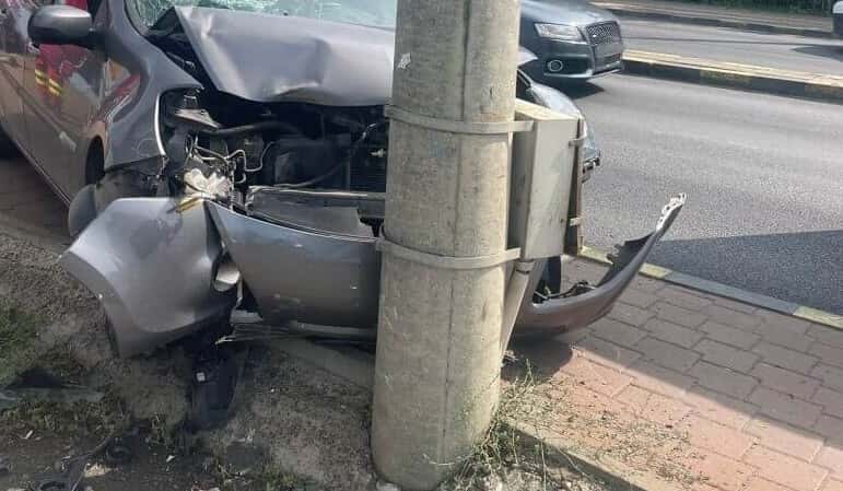 Accident la Scorțeni. Șoferul care a intrat cu mașina în stâlp era beat și a fugit de polițiști