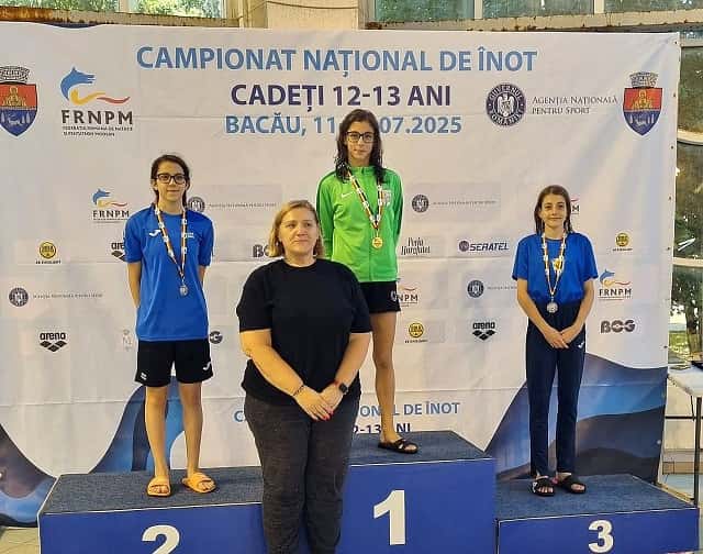 Trei dintre sportivii secţiei de înot a CSM Ploieşti au participat la Campionatul Naţional pentru Cadeţi (12-13 ani) Competiția găzduită de Bazinul Olimpic din Bacău a adus ploieștenilor un titlu de campioană naţională şi alte două medalii de bronz, toate obţinute de Alexandra Dosaru.