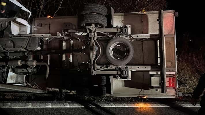 Camioneta a ajuns în șanțul de pe marginea drumului, răsturnată. Nu există informații, la acest moment, despre eventuale victime.