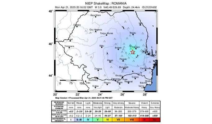 Acesta a fost urmat de alte trei cutremure, cu magnitudini de 3,3, 3 și 2,8 grade.