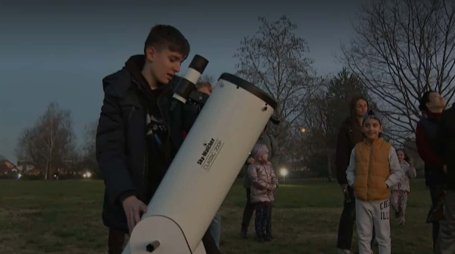 Băiatul a adus un telescop în parc, pentru zeci de copii dornici să descopere tainele universului. Potrivit stirileprotv.ro, micii curioși s-au adunat rapid în jurul telescopului instalat în parcul Coloanei fără sfârșit și au observat planete pe care, cu ochiul liber, le-ar fi considerat simple stele pe cerul nopții.