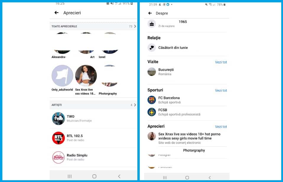 Dl director adjunct, Oprescu Ion, care se dorește a fi un exemplu de moralitate în calitatea sa de îndrumător al generațiilor viitoare, avea postat pe contul public de Facebook,(pana pe data de 2o decembrie) preferințele domniei sale legate de pagini pentru adulți. Mai mult, deși una dintre ele are din titlu ideea că fetele au peste 18 ani, mă gândesc, dacă dânsul predă la clasele de liceu, unde vârsta elevelor de clasa a 11 și a 12 a trece constant peste 18 ani, înseamnă că fiicele noastre sunt, pur și simplu, obiecte sexuale în accepțiunea dumnealui? Cum să avem încredere că domnia sa nu va trece la propuneri indecente făcute elevelor majore pentru a-și satisface pornirile pornografice? De altfel, dânsul este cunoscut pentru subiectivismul de care dă dovadă în notare, fiind mult mai indulgent cu fetele frumoase. Atașez dovezile paginilor care au fost o bună perioadă de timp vizibile oricărei persoane care ar fi vizitat profilul dumnealui. În speranța că prin intermediul dvs. autoritățile îndreptățite vor lua măsuri, vă rog pentru binele copiilor noștri să faceți publice aceste imagini. Altfel cine știe până când vor fi numai vizualizări de pagini pornografice și nu va trece către constrângeri sexuale în rândul elevelor.