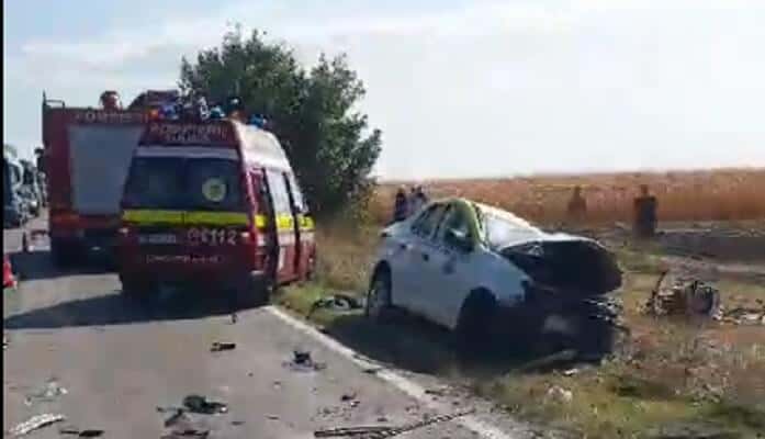În urma impactului, autoturismul a ajuns în afara carosabilului, la cisterna s-a oprit pe câmp, la distanță considerabilă de șosea.
