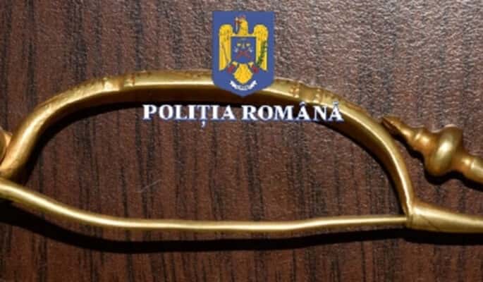 „În urma activităților de cercetare și investigare, polițiștii din cadrul Serviciului de Investigații Criminale – Protejarea Patrimoniului Cultural au recuperat o broșă (fibulă) ce pare a fi din aur, în valoare de aproximativ 30.000 de euro, susceptibilă a face parte din patrimoniul național cultural.