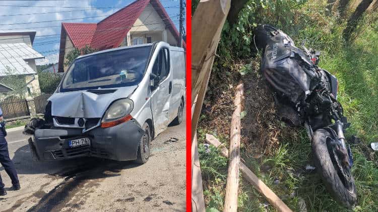 „În eveniment au fost implicate o autoutilitară și o motocicletă. În urma impactului, a rezultat o victimă, motociclistul, care este asistat medical la fața locului de către echipajul SMURD. Motociclistul este conștient, cu traumatisme la coloana cervicală, membrul inferior drept și la nivelul membrelor superioare”, au anunțat reprezentanții Inspectoratului pentru Situații de Urgență Prahova.