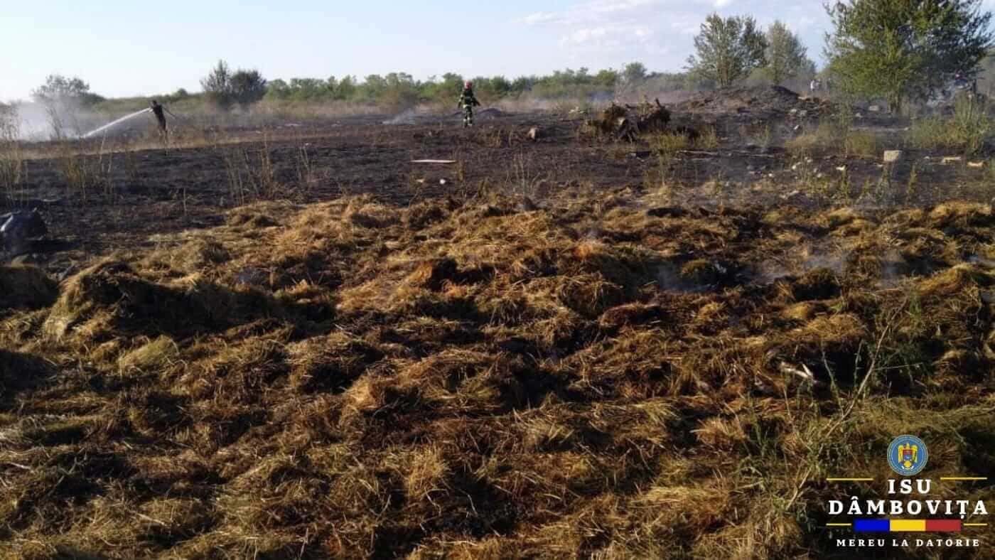 Detașamentul de Pompieri Găești a acționat cu o autospecială de stingere cu apă și spumă, incendiul manifestându-se pe o suprafață de aproximativ 6.000 de metri pătrați.