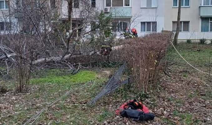 FOTO 📸 Ploiești. Pompierii au intervenit pentru îndepărtarea unui copac care s-a rupt de la rădăcină