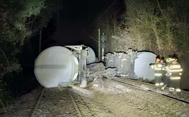 Două dintre acestea sunt răsturnate, iar alte trei deraiate, fiind identificate scurgeri de carburant.