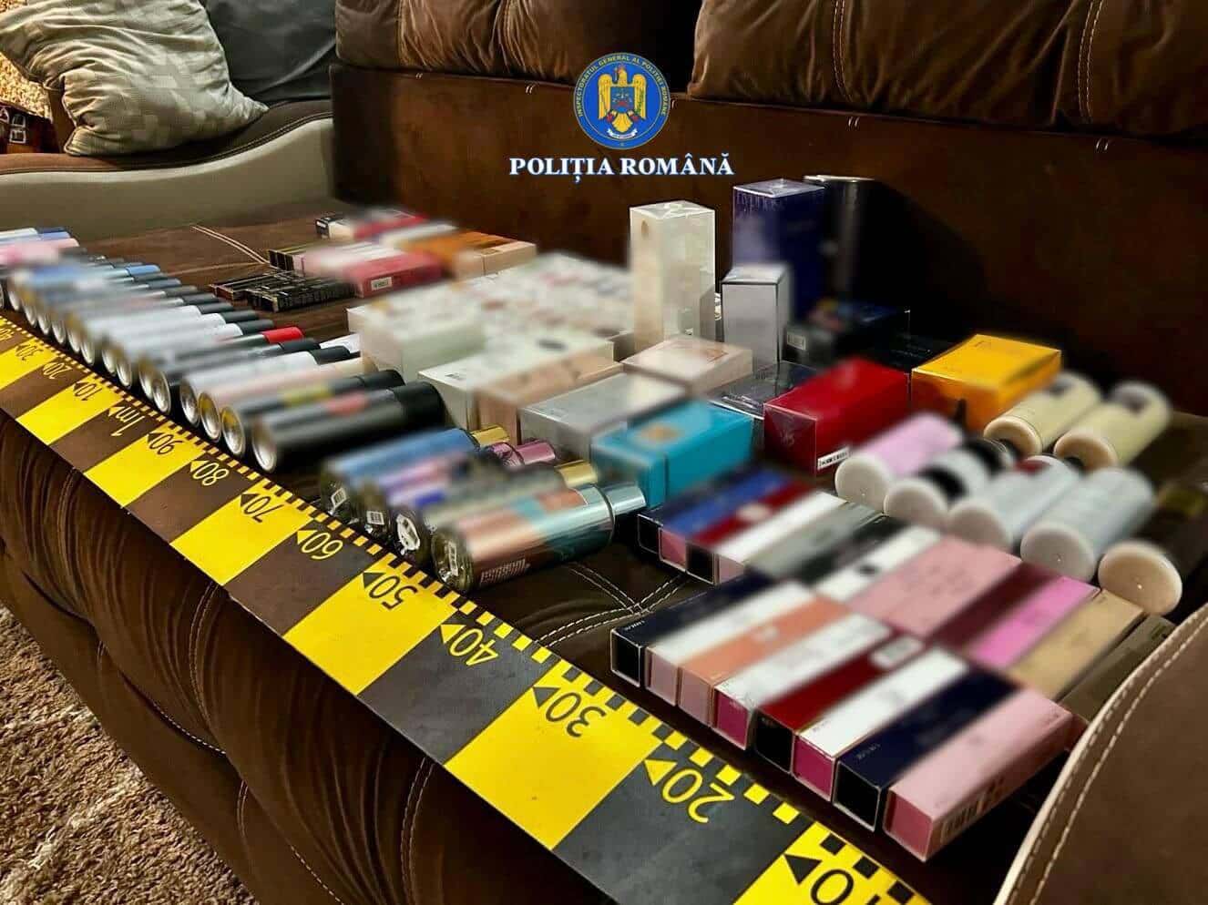 Cu ocazia perchezițiilor domiciliare, au fost identificate și ridicate pentru continuarea cercetărilor peste 100 de parfumuri, peste 20 de deodorante, spray-uri și loțiuni de corp, produse cosmetice, dar și un rucsac și 3 portofele, toate purtând mărci identice sau similare cu mărci înregistrate, în valoare totală de 104.700 de lei.
