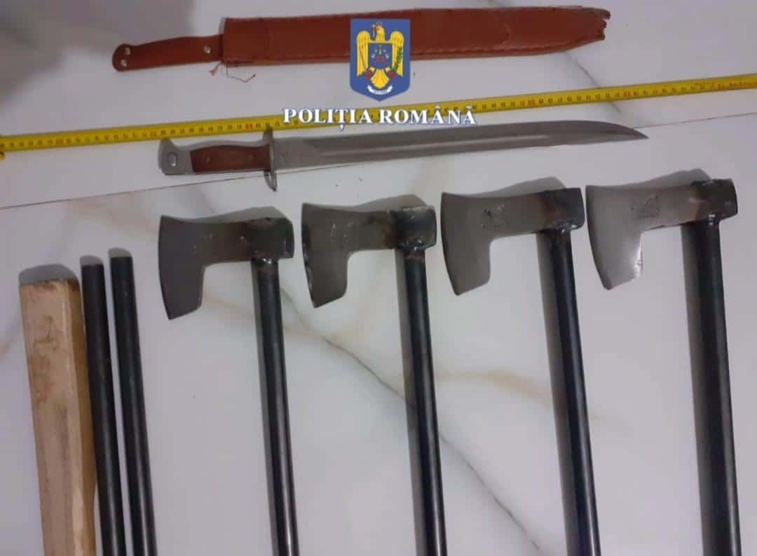 VIDEO 🎦 Bătăi cu săbii, macete și topoare, în ultimele nopți, în Ploiești. Polițiștii au găsit azi, la percheziții, un arsenal întreg