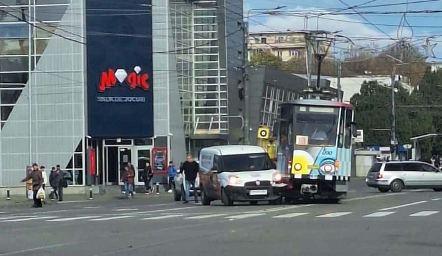 În evenimentul rutier, petrecut în intersecția de la Nord, au fost implicate un tramvai și o dubiță.