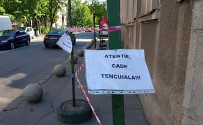 În zona clădirii cunoscute ca Palatul Telefoanelor au apărut, cu aproximativ o săptămână în urmă, benzi și avertismente care interzic trecerea pietonilor pe trotuarul de lângă imobil. La doar câteva zile distanță, astfel de afișe, improvizate pe coli de hârtie, au apărut și în dreptul blocului de lângă.