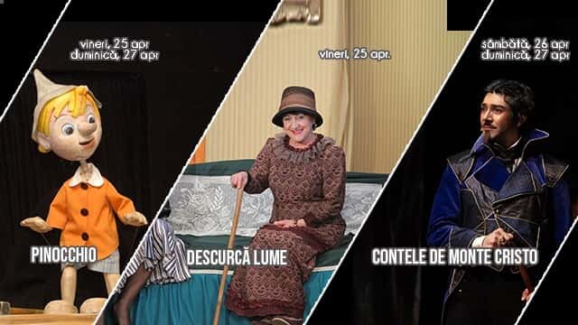 Luna aprilie se încheie cu unul dintre cele mai longevive spectacole din repertoriul secției Teatrul de Revistă Majestic, o montare a unui text românesc care a încântat generații de spectatori, dar și cu un musical grandios, inspirat de unul dintre cele mai cunoscute romane scrise de Alexandre Dumas, care a avut recent premiera pe scena Teatrului „Toma Caragiu”. Copiii se vor întâlni cu povestea unui erou a cărui transformare dintr-o simplă marionetă într-un băiețel adevărat va dezvălui importanța curajului, a sincerității și a empatiei.