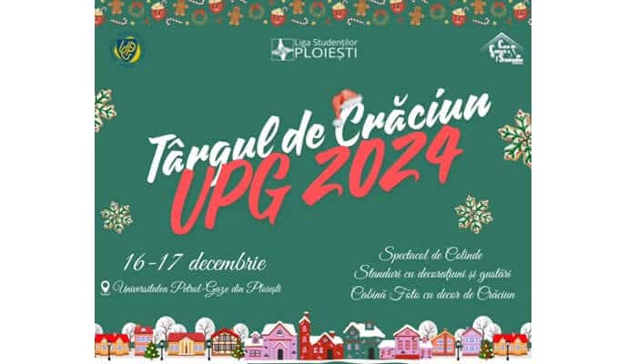 Târgul de Crăciun organizat de UPG Ploiești va avea loc pe 16 și 17 decembrie și va reuni studeți talentați care se vor mobiliza pentru a strânge fonduri destinate copiilor cu dizabilități de la un centru social. Tinerii vor pune în vânzare decorațiuni și dulciuri de sezon. Tot ei vor fi cei care vor întreține atmosfera, pe parcursul celor două zile, prin momentele artistice pregătite pentru vizitatori.
