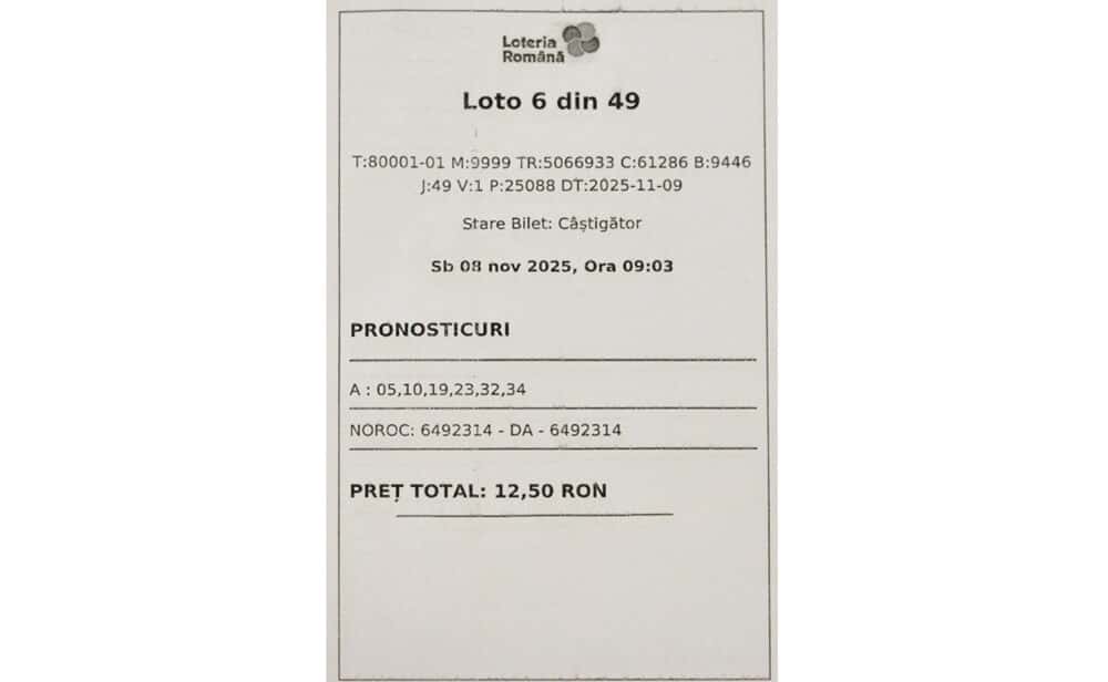 Marele premiu Loto 6/49, de aproape 10 milioane de euro, a fost câștigat duminică. Biletul norocos a costat doar 12 lei