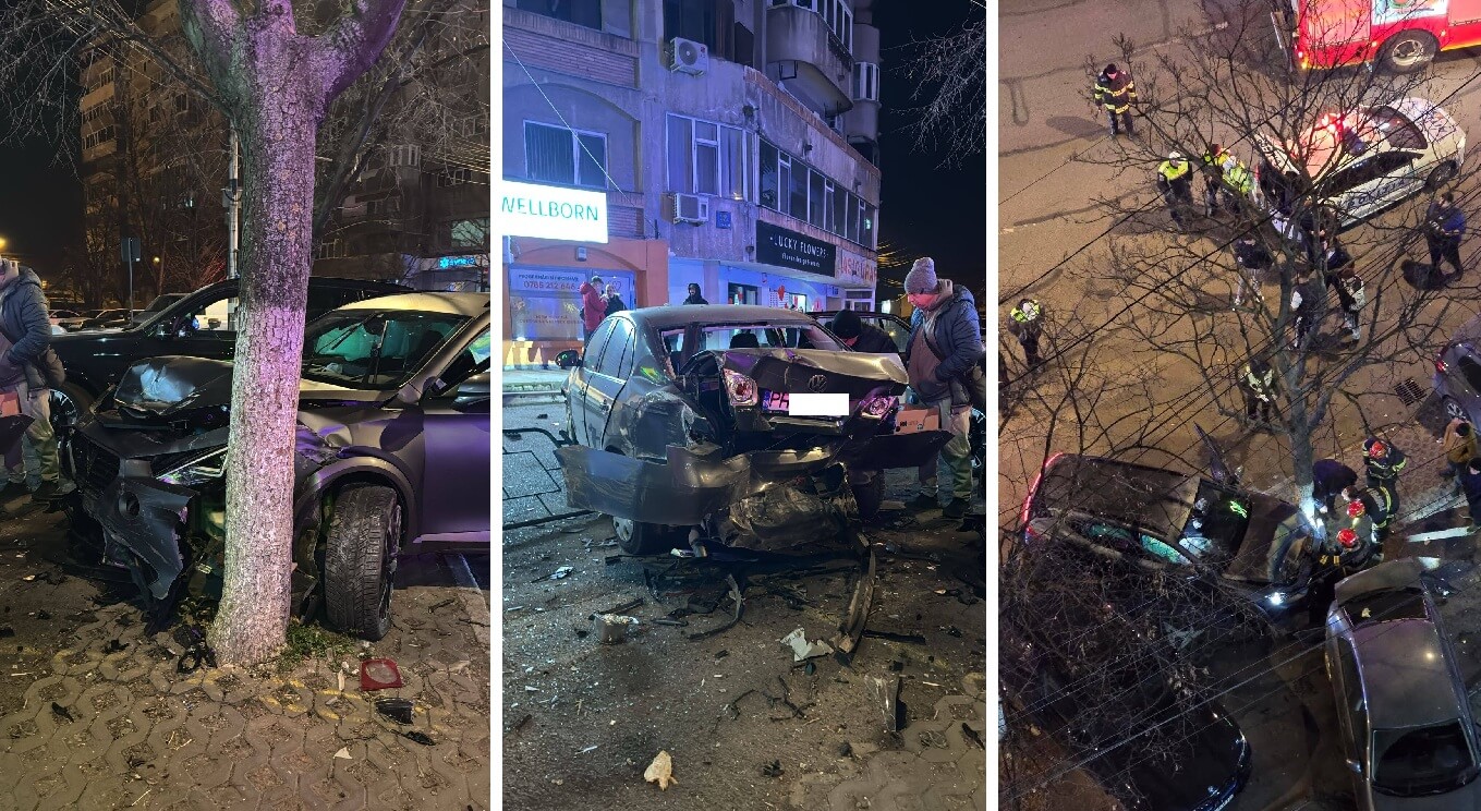 În urma evenimentului rutier, autoturismul a intrat în coliziune cu două autoturisme parcate, cu gardul aferent trotuarului, cu un indicator rutier, precum și cu un copac.