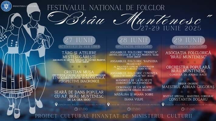 Urmează, așadar, trei zile de tradiție, dans, muzică și meșteșuguri românești, în cadrul evenimentului organizat de Asociația „Brâu Muntenesc” și finanțat de Ministerul Culturii, dedicat iubitorilor de folclor autentic.