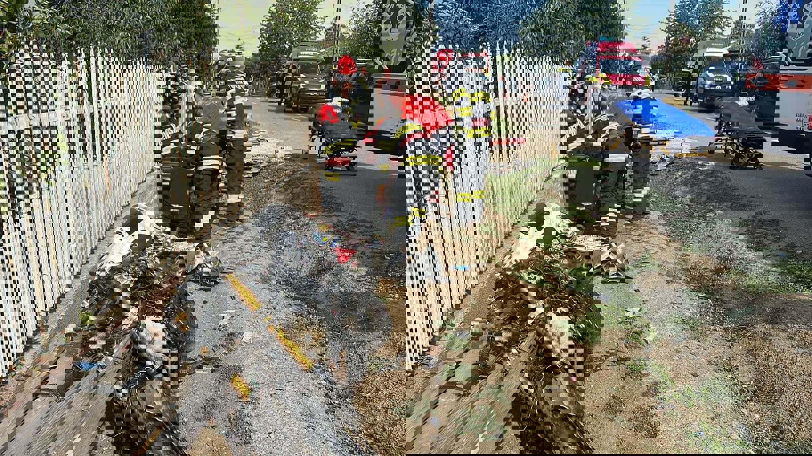 La locul intervenției a ajuns și ambulanța TIM (terapie intensivă mobilă), cu medic. Motociclistul a fost transportat la spital de ambulanța SMURD.