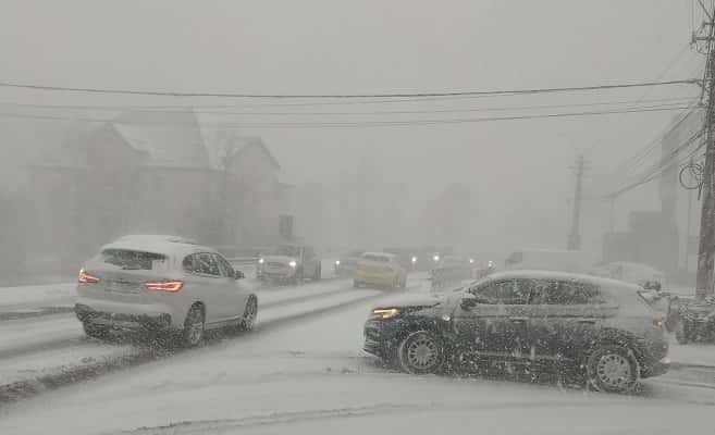 Polițiștii avertizează că se înregistrează ninsoare viscolită pe DN1 - Valea Prahovei, unde carosabilul este acoperit cu zăpadă, și fac apel către șoferi să nu recurgă la manevre riscante, date fiind condițiile meteo și aglomerația.