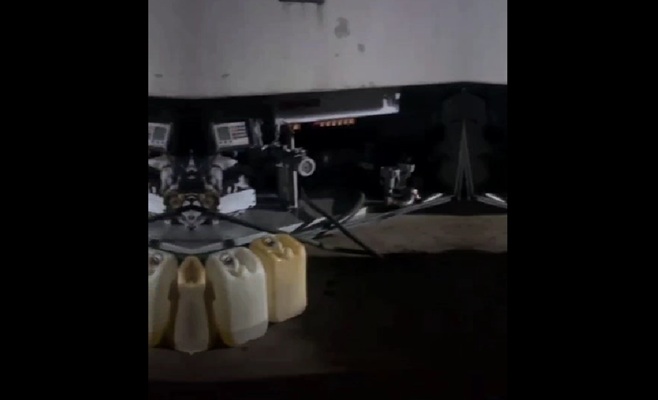 Bărbatul utiliza o instalație artizanală, cu ajutorul căreia transfera combustibilul în 5 recipiente din plastic, cantitatea totală fiind de aproximativ 100 de litri de produs petrolier.