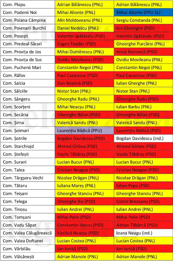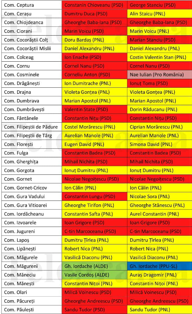 Lista primarilor aleși în Prahova, pe 27 septembrie