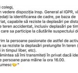 Europol: Şeful Poliţiei Române cere ajutorul voluntarilor „pasionaţi de drumeţii” şi de „vânătoare”, capabili să se deplaseze pe distanţe lungi, pe teren accidentat, inclusiv noaptea, pentru prinderea lui Emil Gânj, suspectat de crima din Mureş