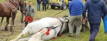 Un cal de rasă a murit după ce a tras un buștean de o tonă, la un concurs din Bistrița-Năsăud