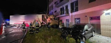 Un TIR a lovit două maşini parcate, un stâlp de curent și a intrat apoi în zidul unui imobil