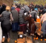 Bătaie pe portocale după ce un TIR s-a răsturnat. Oamenii s-au călcat în picioare să adune fructele de pe jos
