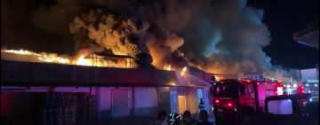 Incendiu uriaș, azi-noapte, la o hală cu depozite din Complexul „Dragonul Roșu”. Întreaga construcție a fost distrusă