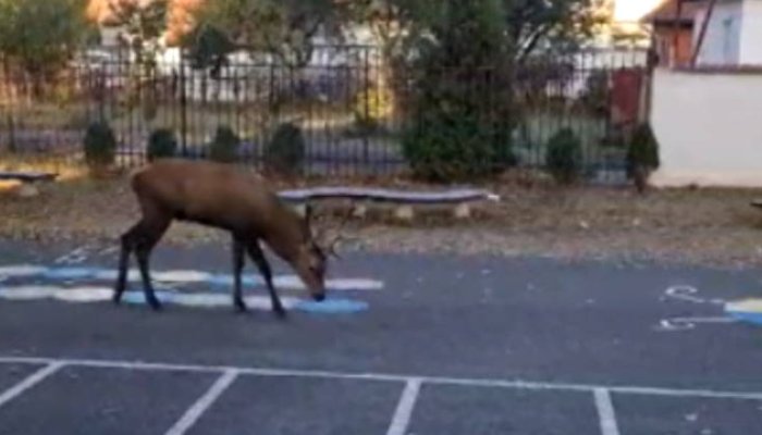 FOTO | Un cerb a apărut în curtea unei școli din Râșnov