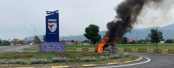 FOTO | O mașină a luat foc pe DN1, în Ghimbav. Traficul e restricționat