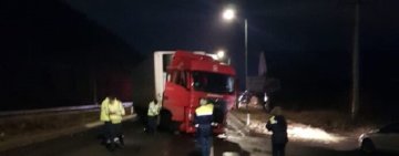 O cisternă încărcată cu adeziv s-a răsturnat între Predeal și Râșnov