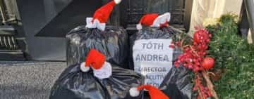 PROTEST | Un consilier local a adus saci de gunoi pe scările Primăriei