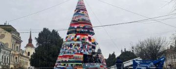 Un brad înalt de 10 metri, făcut din fulare croşetate, a creat indignare în Târgu Mureş