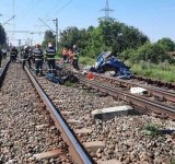 Doi adulți și doi copii au murit, duminică, după ce mașina în care se aflau a fost lovită de un tren care venea spre București