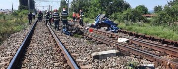 Doi adulți și doi copii au murit, duminică, după ce mașina în care se aflau a fost lovită de un tren care venea spre București