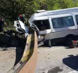 Două persoane decedate într-un accident provocat de bucăţi desprinse dintr-un pod feroviar căzute peste un microbuz