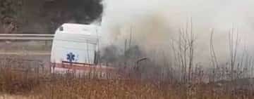 O ambulanță a luat foc, joi, pe drumul spre spitalul de la Bisericani