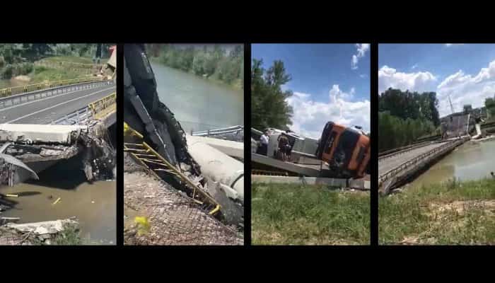 Un pod din Neamț s-a rupt. Două mașini se aflau în tranzit