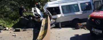 Două persoane decedate într-un accident provocat de bucăţi desprinse dintr-un pod feroviar căzute peste un microbuz