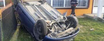 O şoferiţă s-a răsturnat cu maşina în curtea unei case