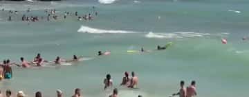 VIDEO - Turiștii au format un lanț uman, la Eforie, pentru a scoate la mal trei salvamari și un individ beat, care se avântase departe de țărm
