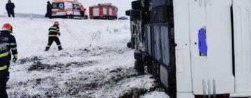 Un microbuz a fost răsturnat de vânt, pe un drum din Galați. A fost activat Planul Roșu de Intervenție
