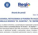 Anunț de presă: CONSOLIDAREA, RESTAURAREA ȘI PUNEREA ÎN VALOARE A ANSAMBLULUI BISERICII “SF. DUMITRU”, “SF. ÎMPĂRAȚI”