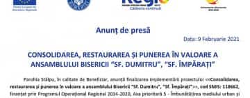 Anunț de presă: CONSOLIDAREA, RESTAURAREA ȘI PUNEREA ÎN VALOARE A ANSAMBLULUI BISERICII “SF. DUMITRU”, “SF. ÎMPĂRAȚI”