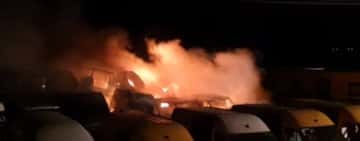 VIDEO | 27 de mașini afectate de incendiul izbucnit azi-noapte, într-un parc auto din Buzău