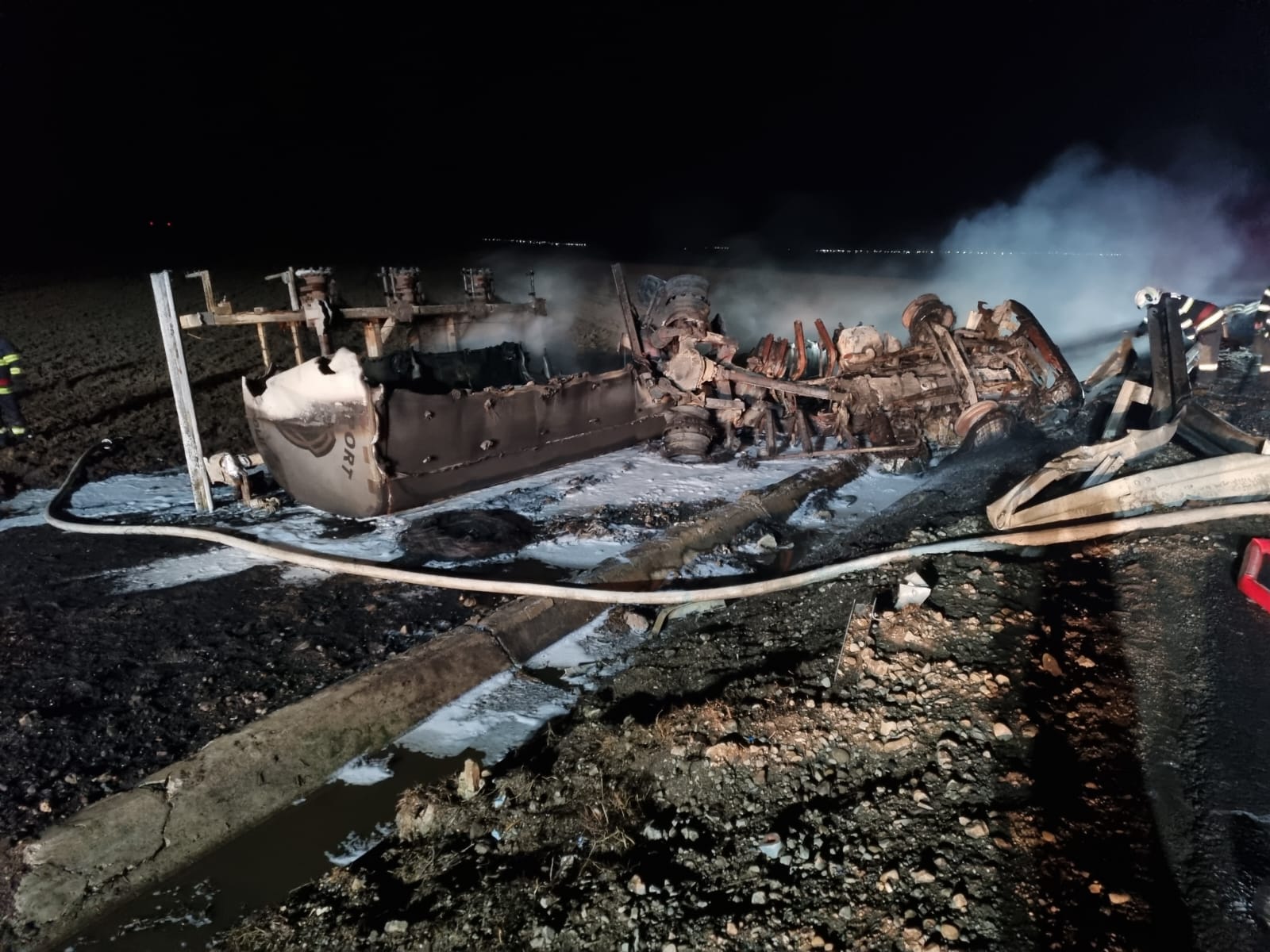 Din nefericire, şoferul cisternei nu s-a putut salva şi a murit carbonizat.