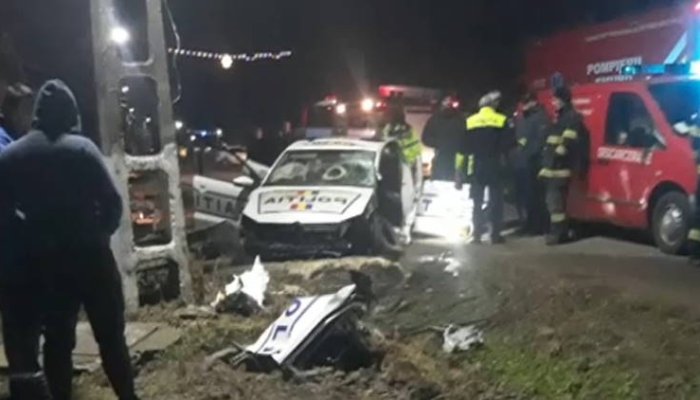 Maşină de Poliţie distrusă, după o urmărire pe un drum judeţean din Buzău